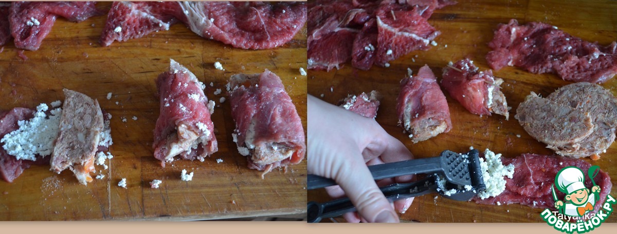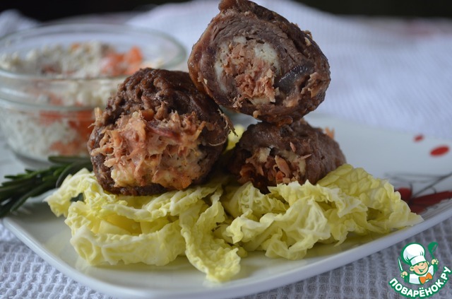 Рецепт «Мясные рулетики-сальтимбокка с творогом»: