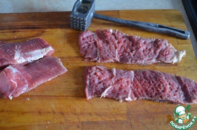 - Говядина (тонкие отбивные (можно телячьи или из индейки)) — 4 шт