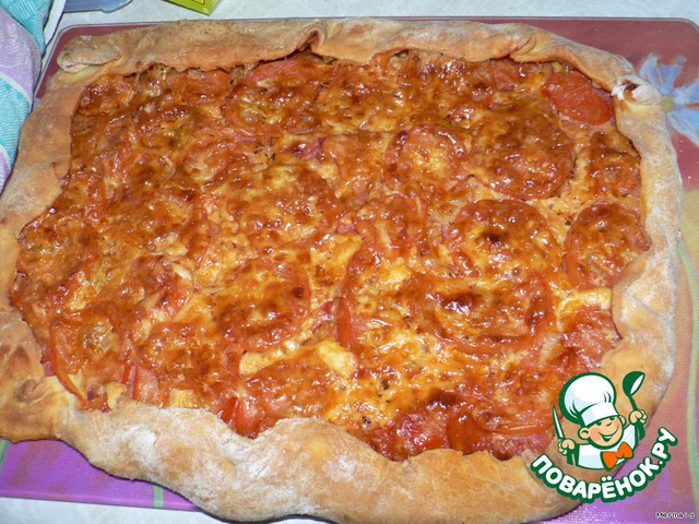 Рецепт «Пицца с сервелатом и всякими вкусными добавками»: