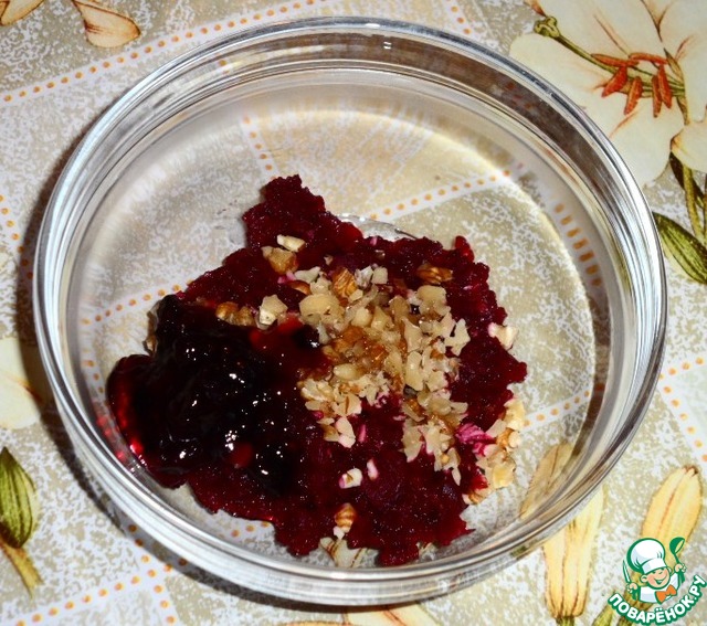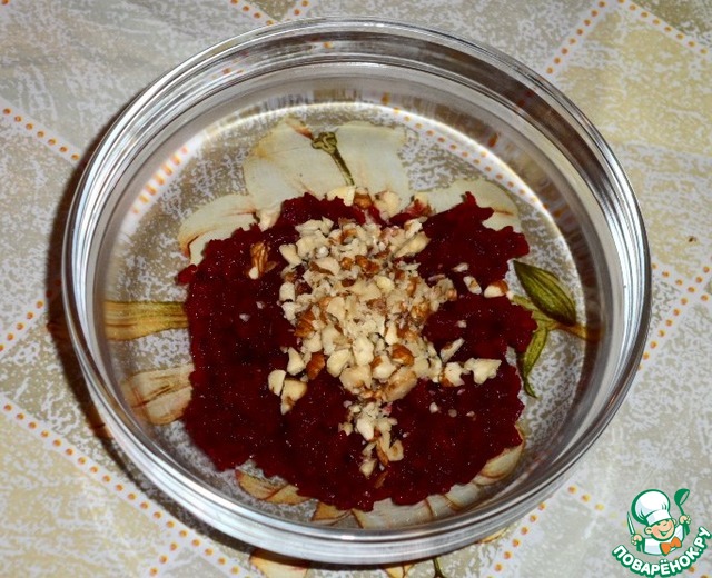 Грецкие орехи порубить и добавить к свекле.