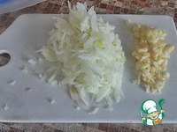 Лук и чеснок измельчить. |