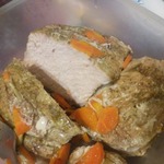 Положить мясо в миску, затянуть пленкой и отправить в холодильник на сутки мариноваться. За время маринования необходимо мясо несколько раз перевернуть. Я, когда переворачивала, еще дополнительно втирала маринад в свининку.
