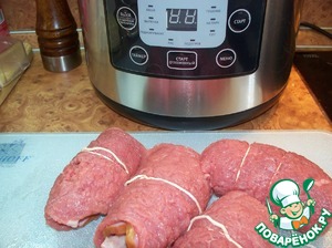 Аккуратненько заворачиваем котлеты рулетом и связываем нитью.