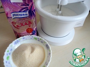 Взбить белки с мелким сахаром.