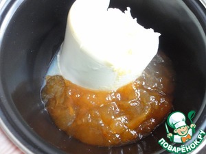 Маскарпоне соеденить с абрикосовым джемом.
