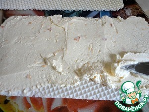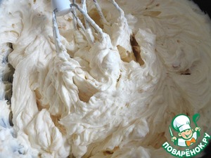 Отложить 1/3 сливок. Остальные сливки аккуратно смешать с абрикосовым маскарпоне, это будет наш вкуснейший крем.