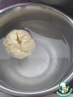 Когда шар из теста поднимется из воды и увеличится в 2 раза, выловить его, обсушить.
