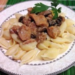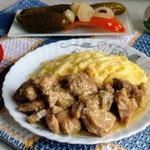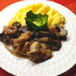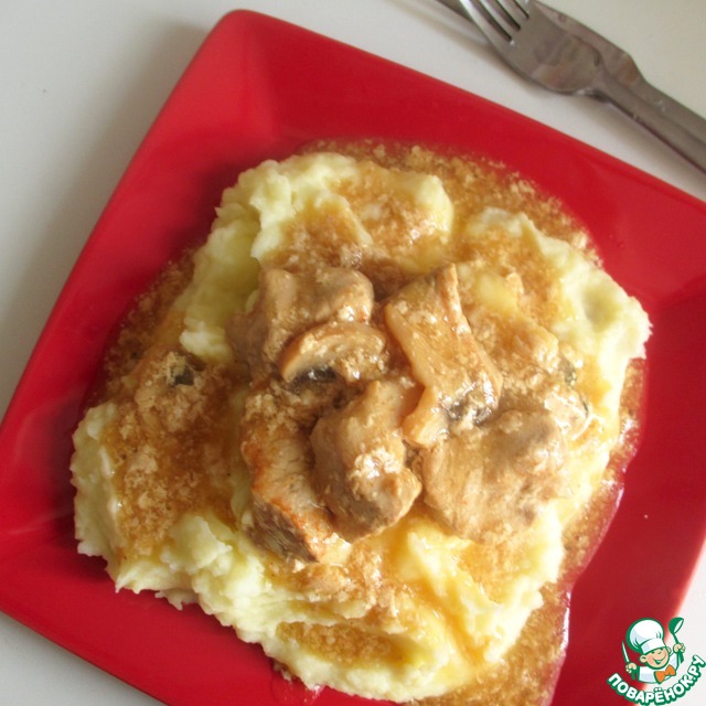 Гарнир - на ваш выбор. Лучше всего, на наш вкус, с картофельным пюре. Но и с макаронами, и с рисом тоже вкусно!