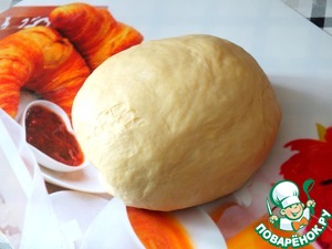 Замесить мягкое, эластичное тесто. Желательно не забивать мукой, рекомендую просто смазать руки растительным маслом и продолжать вымешивать тесто