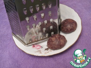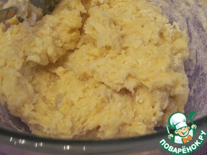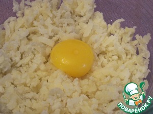 Остудим, очистим, натрем на терке. Добавим желток, перемешаем, посолим.
