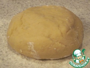 Тщательно вымесим тесто, слегка подсыпая муку, в течение 5 минут. Отложим минут на 15 в сторонку.