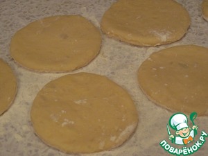 Раскатаем тесто в тонкий пласт и вырежем из него кружки.
