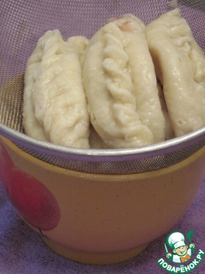 Вынем вареники из воды и выложим на сито, чтобы вода стекла с них.