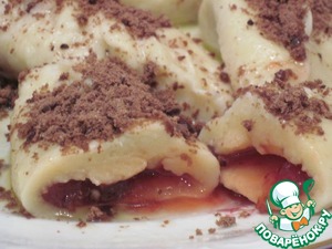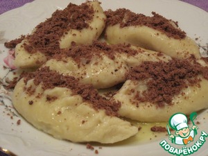 Присыпем слегка вареники сахарной пудрой и сверху стружкой пряничной.