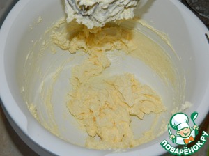 Берем для начинки сливки, сахарную пудру и джем "Махеев" малиновый. Взбиваем сливки с сахарной пудрой хорошенько. Затем добавляем размятые сырки и еще немного взбиваем.