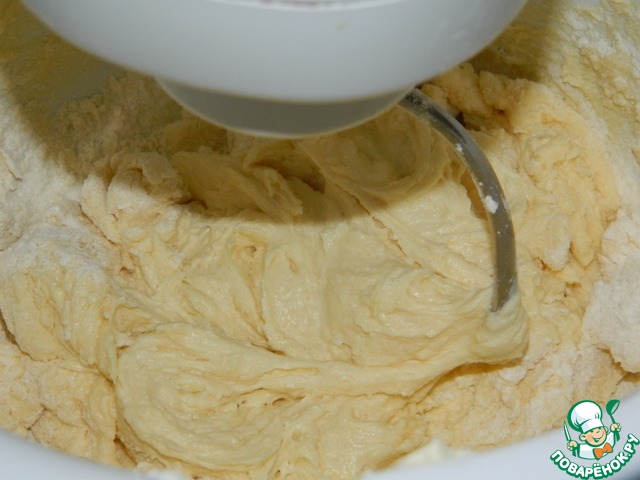 Добавить муку и соду. Замесить тесто.
