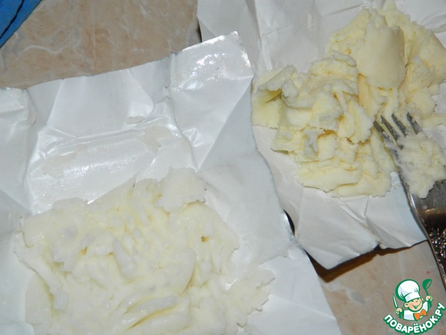 Дальше разминаем вилкой сырки.