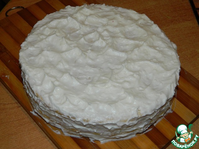Обмазываем верх и бока торта сливочным кремом