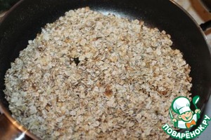 На сухой сковороде обжариваем овсяные хлопья до золотистого цвета.