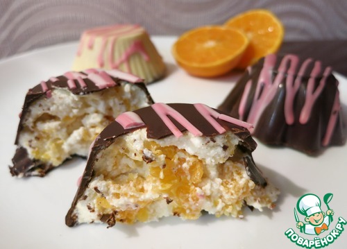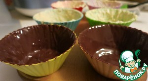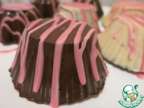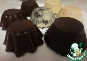 Как только шоколад хорошо застынет, поддеваем края формочек и выкладываем сырки, выворачивая форму, как чулок.