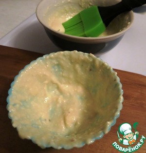 Нужно приготовить 7 корзиночек: белые, черные и 1 двухслойная бело-черная (это в качестве эксперимента). Отправляем эту всю красоту в морозильную камеру, пока приготовим начинку.