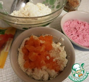 2. Творог с сахаром, цедрой апельсина и кусочками мандарина