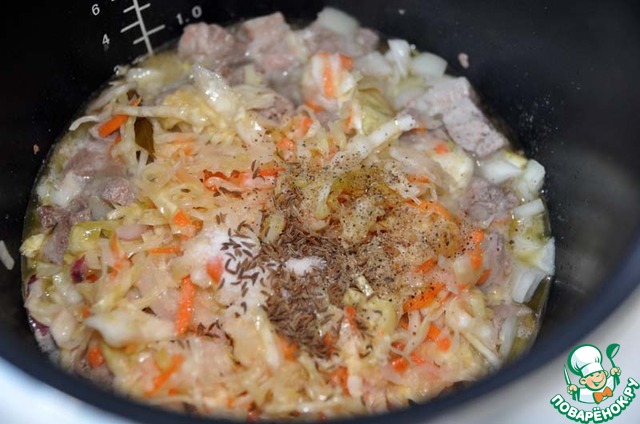 Всё перемешиваем, крышку закрываем и ставим на режим "Тушение" ещё на 30 минут.