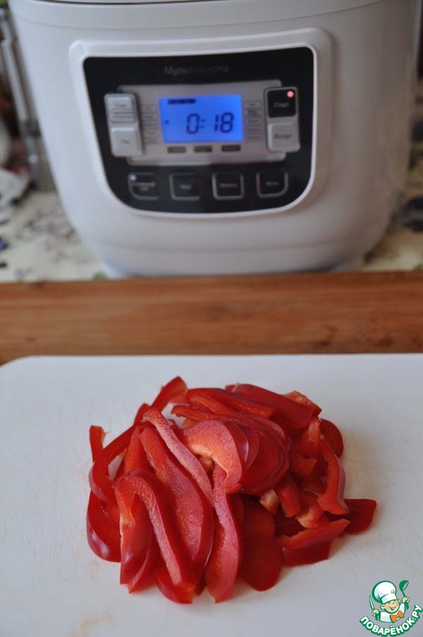 Пока гуляш тушится, моем и нарезаем тонкими полосками красный болгарский перец.