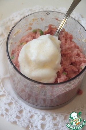 Отдельно взбиваем белки в крепкую пену и добавляем к мясу.