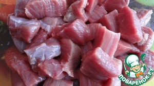 Режем мясо на куски.