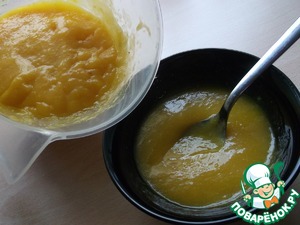 Отдельно взять 5 ст. л. мангового пюре и ввести в него жидкий желатин, хорошо перемешать. Только затем смешать с остальным манговым пюре.