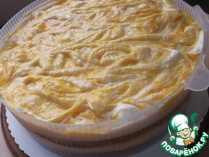 Такую же процедуру проводим с оставшимися кремами - йогурт, манго, разводы вилкой.
