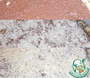 • Горячий корж присыпаем темным шоколадом, конфетной крошкой и белым шоколадом. При большом желании можно расплавить шоколад и "полить" коржик более художественно. Так вот, посыпали шоколадом и конфетами и минут на 5-ть в духовку, чтобы шоколад оплавился.