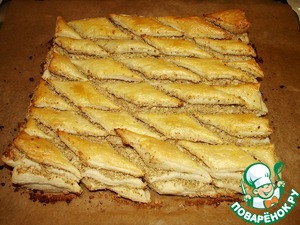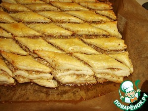 Это невероятно просто и вкусно. Спасибо вам огромное за такой чудесный рецепт. От себя посоветую всем кто будет готовить, прокатывать скалкой каждый новый слой теста и орешков. Тогда слойки будут менше разваливаться. Автору еще раз спасибо)))))