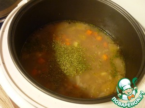 За 5 минут до готовности супа добавляем любимую зелень, можно сушеную!