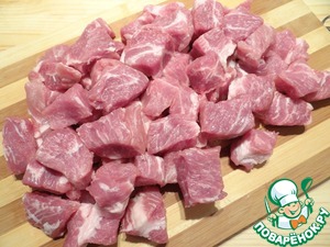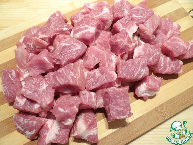 Нарезаю мясо кубиками.