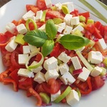 Выложите на блюдо, посыпьте тертой брынзой, оформите зеленью петрушки.