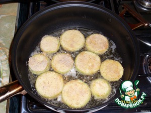 Каждый кружок обмакиваем во взбитое яйцо, обваливаем в панировочных сухарях и обжариваем с 2-х сторон на сковороде.