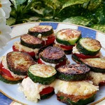 Собираем наши башенки: кабачок-начинка-поми дор-начинка-кабачок.