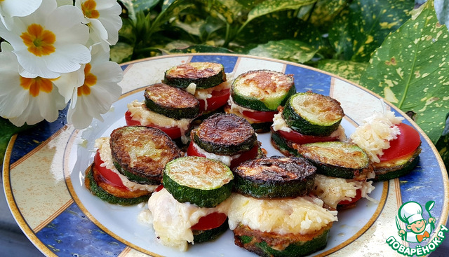 Рецепт «"Башенки" из кабачков с помидорами и чесноком»: