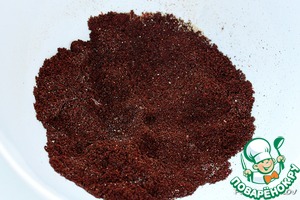 2. Готовим панировку. Кофе среднего помола смешать с пажитником, солью и молотым розовым перцем.