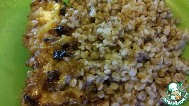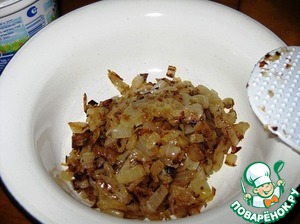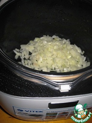 Оставшийся лук измельчить, режим "поджаривание" 5 минут на сливочном масле.