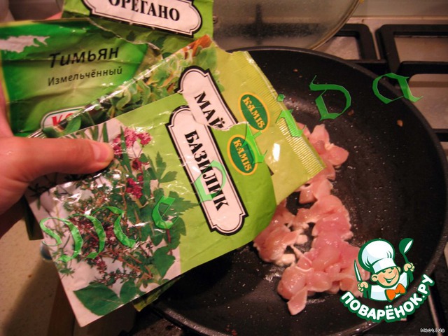 Г. смешать в миске курицу, сыр, перец -