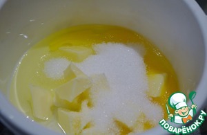 • Данный объём продуктов рассчитан на большую форму диаметром 28 см. Вы можете взять половину или треть для маленькой формы. Для теста взбить миксером масло комнатной температуры с сахаром и яйцами, пока сахар полностью не растворится.