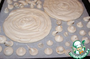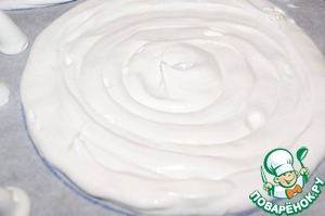 Поместить меренгу в кулинарный мешок или шприц. И начиная с центра отсадить по начерченным окружностям два коржа.