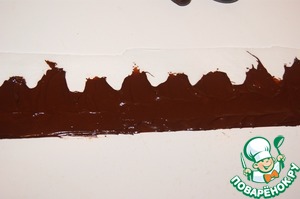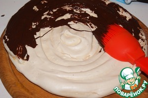 Растопить 75 г шоколада, остудить до 30"С и смазать им коржи. Поместить в холодильник и дать шоколаду застыть.