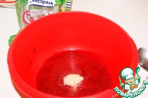 Отложить 2 ст. л. пюре и нагреть, растворить в нем отжатый желатин. -