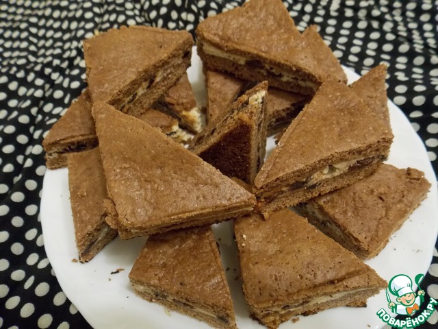 Вкусное шоколадное печенье с начинкой из творога и сухофруктов.