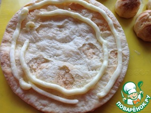 На основу из слоеного теста выложить по окружности две полоски масляного крема.