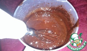 В растопленные на паровой бане масло и шоколад добавляем муку.